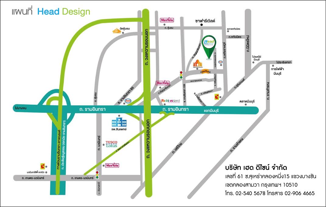 61 Surao Khlong Nueang 15 Alley Bang Chan, Khlong Sam Wa Bangkok 10510, Thailand 61 ซอยสุเหร่าคลองหนึ่ง 15 แขวงบางชัน เขตคลองสามวา กรุงเทพฯ 10510 Tel: +66 (0) 2540 5678 ต่อ 411 Fax: +66 (0) 2540 5678 ต่อ 411 Mobile: 09 5205 3719